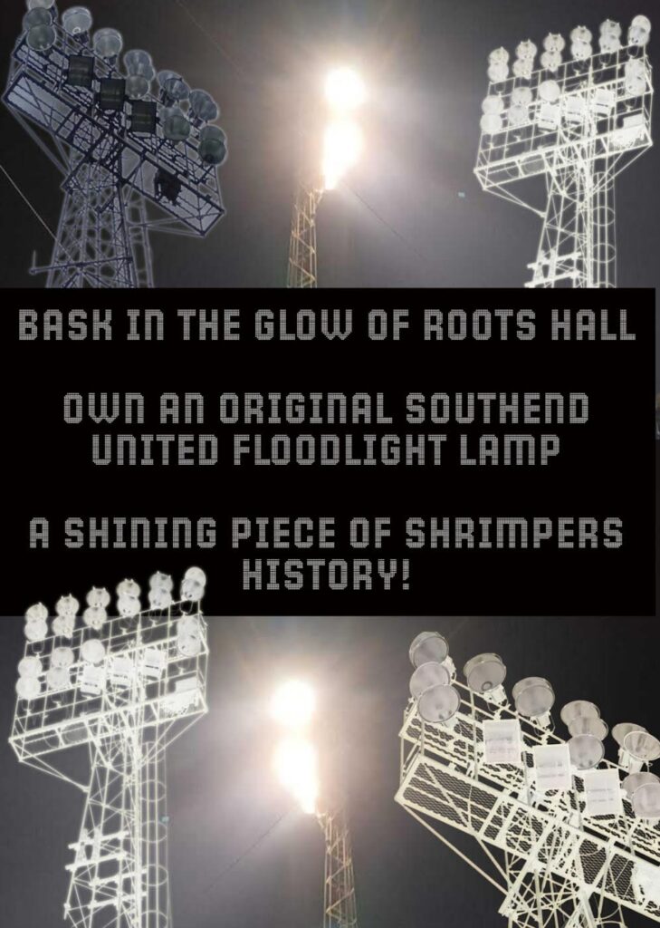 The club are embarking on a programme to upgrade the floodlights at Roots Hall, which includes replacement of all 88 of the existing lamps on all four pylons. These are being made available by the club to the Southend United History Group, and some will be retained by that Group for future display purposes. However, the significant majority are being offered to fans to purchase, and all proceeds will be allocated to the Southend United History Group.